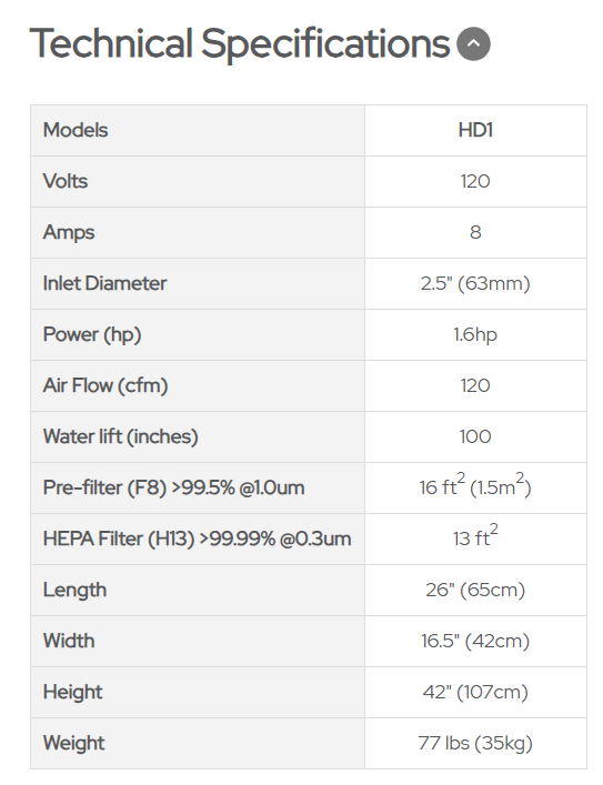 HD1 HEPA Dust Collector